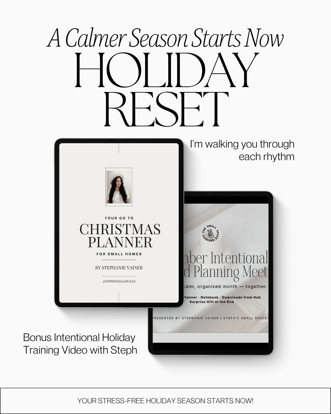 Designed by Stephanie Vainer (@stephssmallspaces), this guide helps you make space for calm — not clutter — and enjoy a warm, grounded Christmas season that actually feels like home.